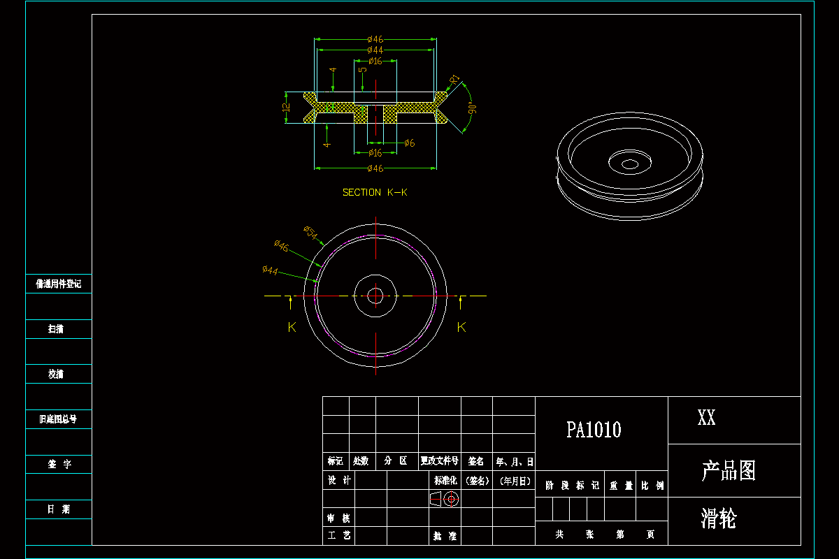关键词:滑轮;一模两腔;注射机;注塑模具