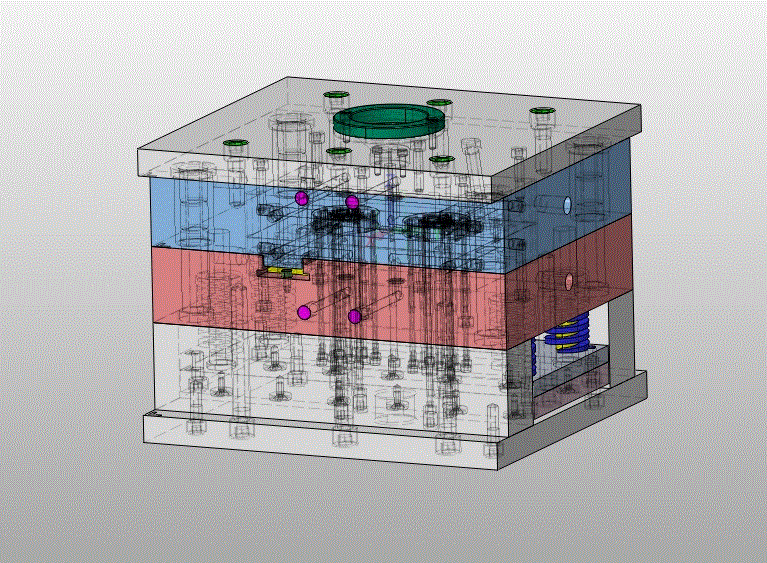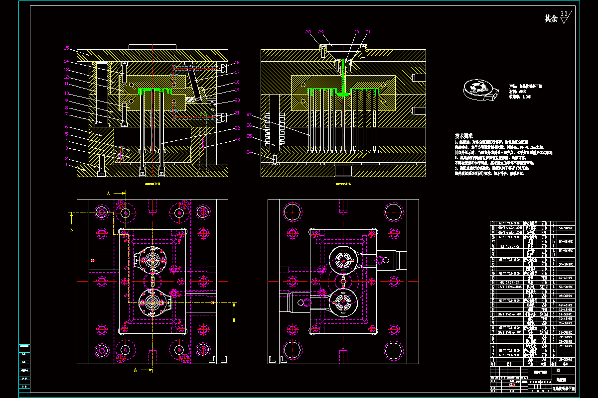 关键词:电热蚊香器下盖;一模两腔;侧浇口;注射机;冷却系统;注塑模具