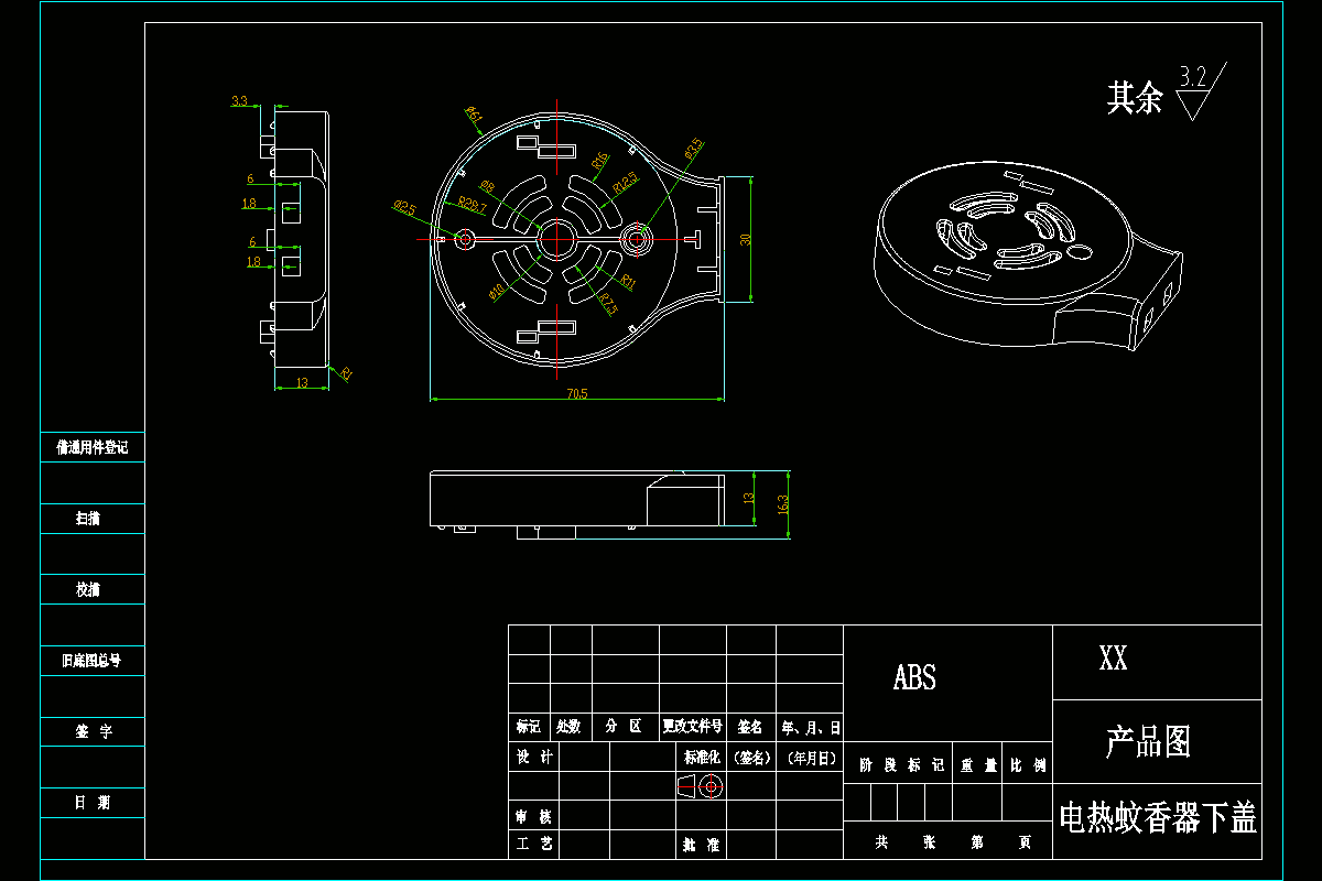 Z798-电热蚊香器下盖的注塑模具设计-侧抽芯[含Proe三维图] 下载积分:150 资料编号: Z798