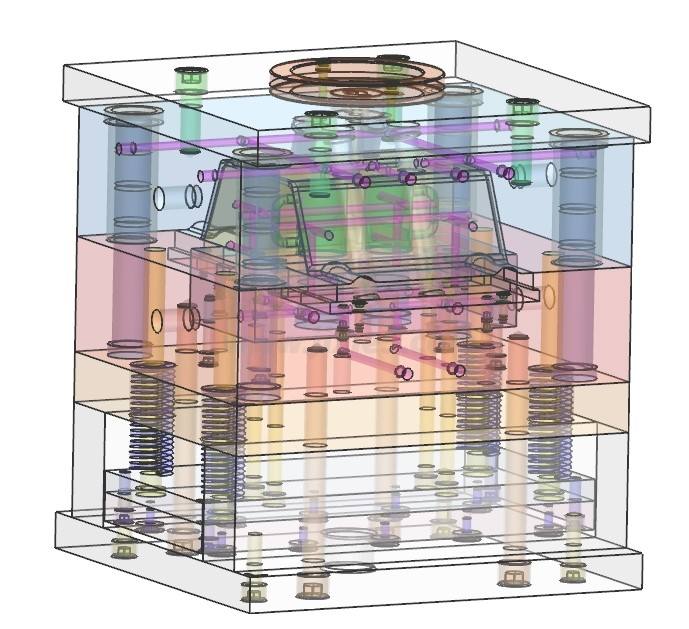 本文主要介绍了经过优化型芯冷却系统后的塑料茶杯注塑模设计、塑料成形工艺以及注塑的过程,也对注塑机也进行了一些简单的介绍。主要设计过程有:塑料制品的工艺分析,型腔数目的确定,型芯冷却系统的设计,注塑机的选择以及模具的结构设计。本文设计的是一模两腔两板式模具,由于塑料茶杯的特殊形状,无法直接脱模,需设置侧面分型机构,本套模具是通过斜导柱进行侧面分型,本文对模具的各部分零件进行了设计与计算。在完成了一系列计算和构想之后,利用Pro/E5.0画出注件的三维图,并设计好浇注系统、开模方向,然后进行开模仿真,在确定无误之后,利用EMX7.0设计模架,在完成模架设计之后,利用装配方法把整套模具完成整体设计并导出总装配图。