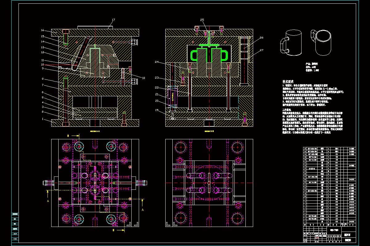 关键词:塑料茶杯;冷却系统;注塑机;注塑模;一模两腔