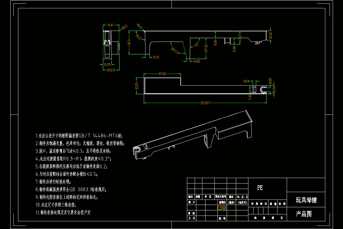 关键词:模具设计;CAD绘制二维图;UG绘制3D图,注射机的选择
