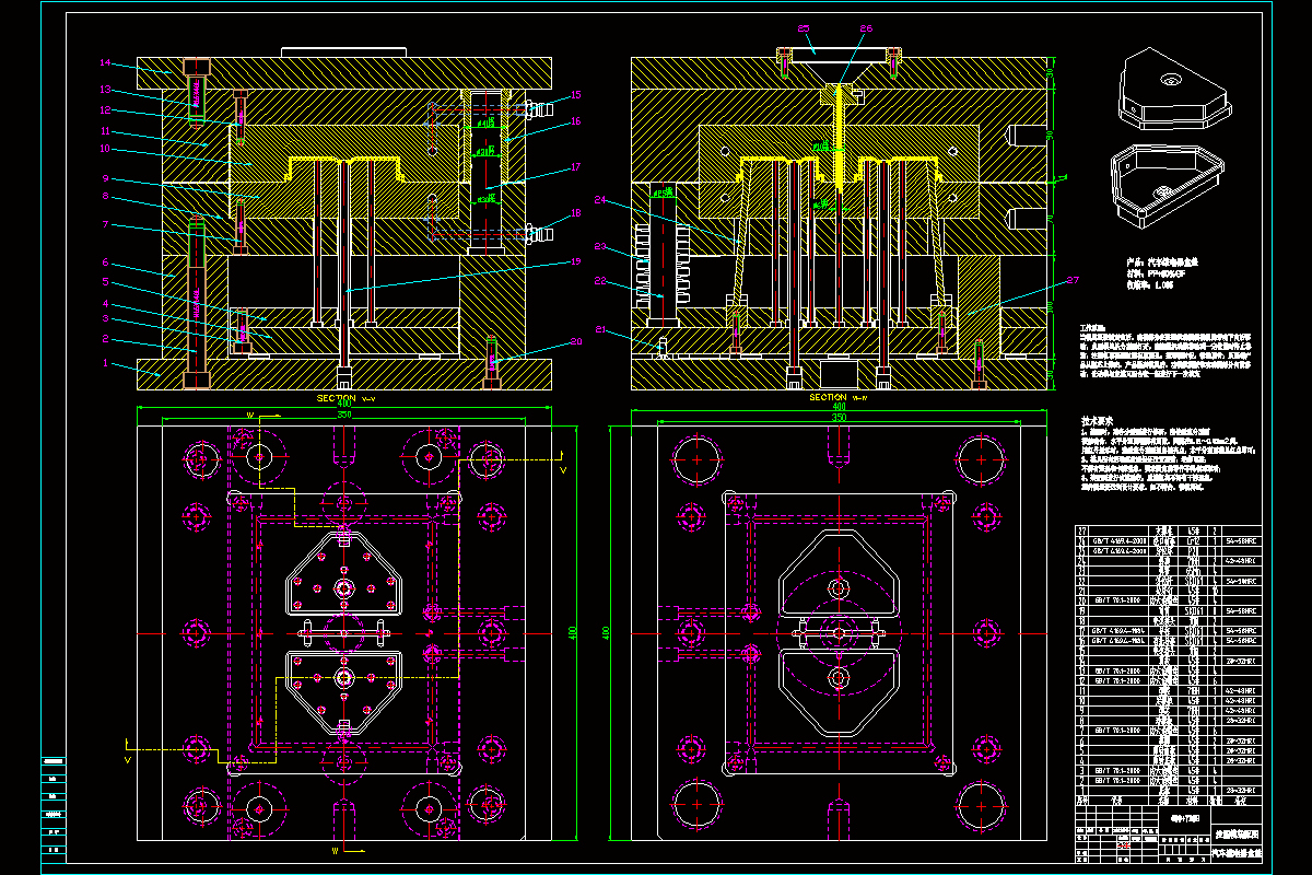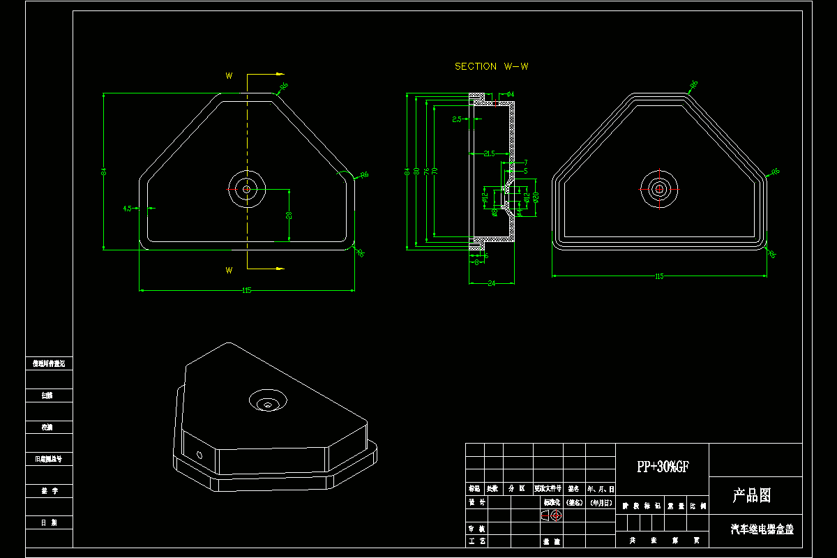 关键词:汽车继电器盒盖;一模两腔;侧浇口;冷却系统;注塑模具