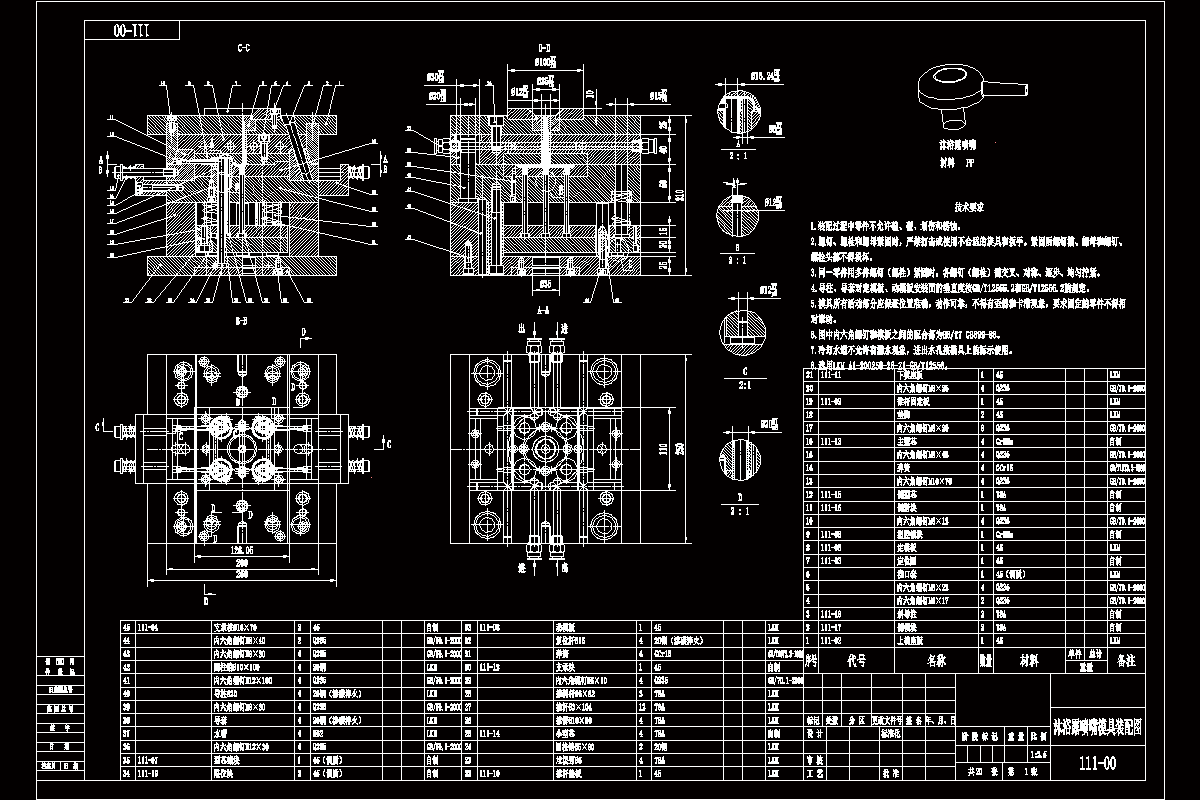 关键词:分型面、浇注系统、侧抽芯、冷却系统、推出机构。