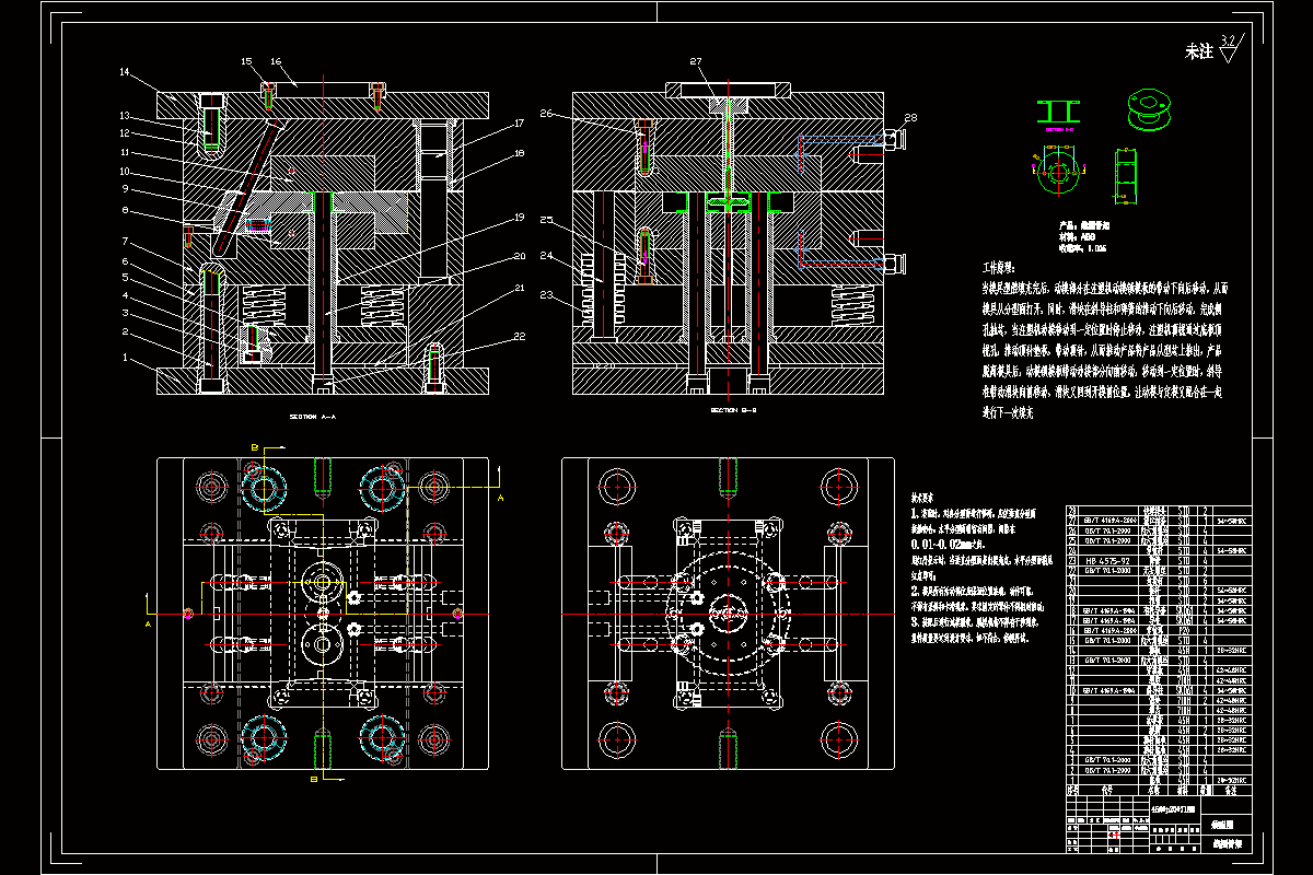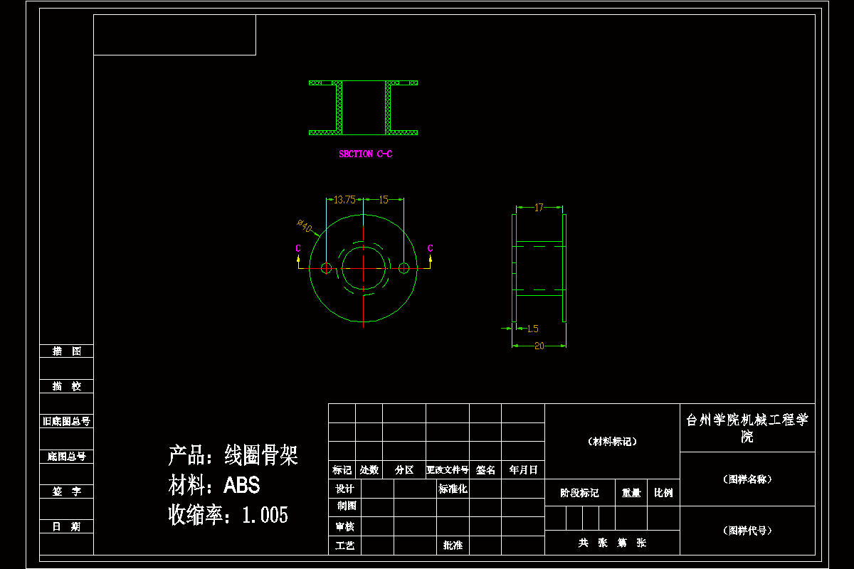 关键词:线圈骨架;注塑模具;一模两腔;侧浇口;注射机;抽芯机构