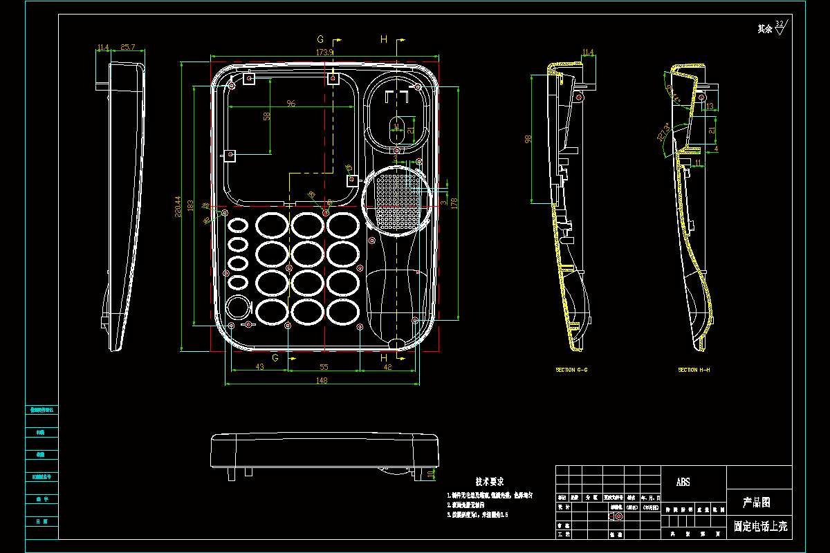 本次设计是为了让我们能够综合运用机械制造工艺学中的基本理论,并结合生产实习中学到的实践知识,独立的分析和解决工艺问题,具备设计一个中等复杂程度零件的工艺规程的能力和注塑模具设计的基本原理和方法,拟定模具设计方案,完成模具结构设计的能力,也能熟悉和运用有关手册、图表等技术资料及编写技术文件等基本技能的一次实践。该课题从产品结构工艺性,具体从模具结构出发,对模具的浇注系统、模具成型部分的结构、顶出系统、冷却系统、注射机的选择及有关参数的校核,都有详细的设计。通过整个设计过程表明该模具能够达到该塑件所要求的加工工艺,也就是设计一副注塑模具来生产电话机上壳体塑件产品,以实现自动化提高产量。针对电话机上壳壳体具体结构,该模具是潜伏式浇口的单分型面注射模具。通过模具设计表明该模具能达到电话机上壳的质量和加工工艺要求。