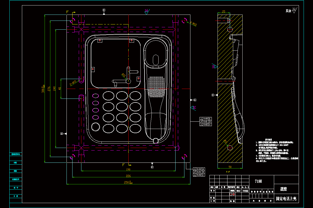关键词:模具;注塑模具;模具结构;电话机座面板;潜伏式浇口;注射机