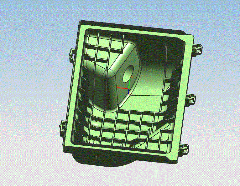 本次主要设计是对汽车配件-LP1807上壳注射模的设计,重点对塑件的成型原理、原料选用和注射技术进行分析。通过根据形状、尺寸、精度及表面质量要求的分析结果,确定所需的模塑成型方案,制品的后加工、分型面的选择、型腔的数目和排列、成型零件的结构、浇注系统等,本套设计中,有一个斜孔,需要抽芯机构才能完成塑件的成型,且抽芯行程较长,所以采用了液压油缸斜抽芯。