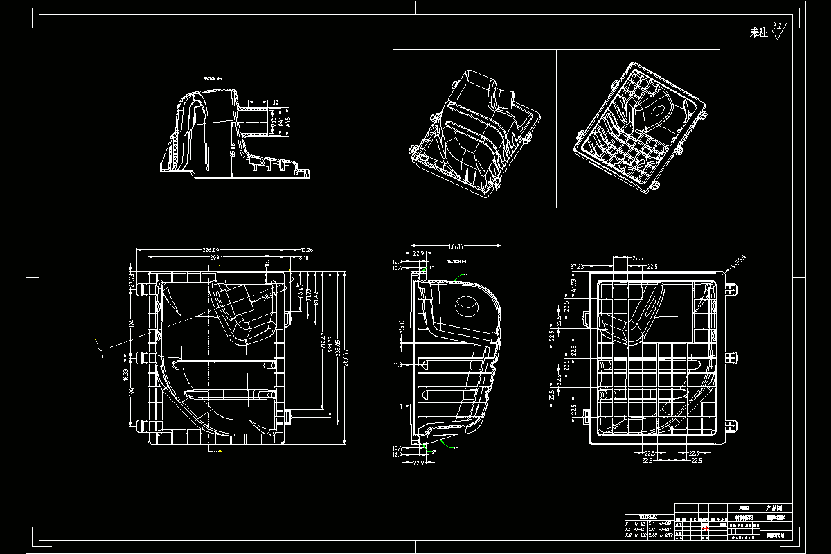 塑料注射模具是成型塑料的一种重要工艺装备,通过对汽车配件-LP1807上壳塑料模具设计,能够全面的了解塑料模具设计的基本原则、方法.并能较为熟练的使用UG、AUTOCAD软件进行塑料模具设计,提高自己的绘图能力。为今后从事设计工作打下了坚实的基矗