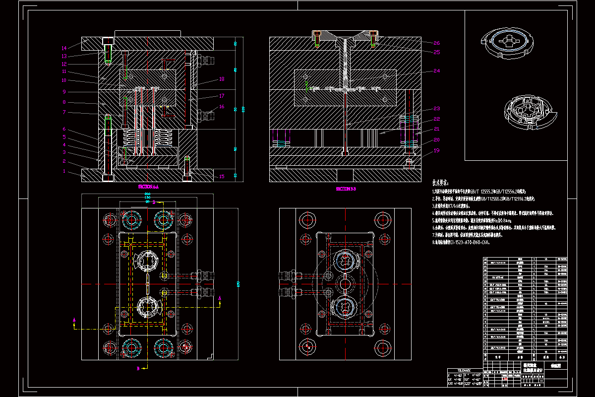 关键词:湿度转盘;一模两腔;侧浇口进料;注射机;冷却系统;注塑模具
