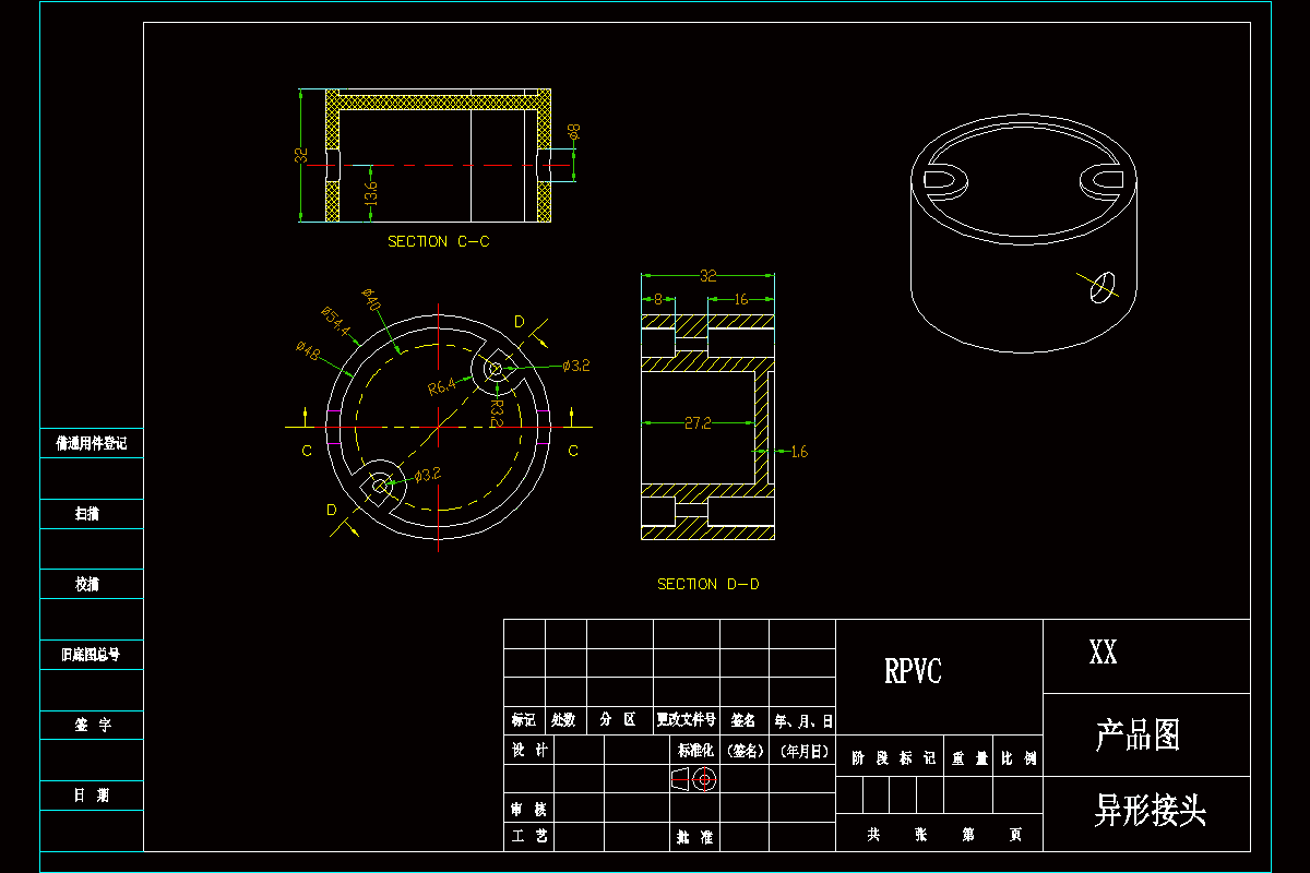 本设计的模具设计对象为异形接头,塑料异型接头制品有很多种成型的方法,本设计使用的是最常使用的注塑方式——注射成型,前期对于设计对象进行了相关的测量,数据的记录等;中期主要是使用UG三维设计软件根据前期测量的数据建立立体模型,并在塑件模型的基础上利用UG制造内的模具型腔模块对异形接头作出相应的注塑模模具设计,包括有塑件元件、主分型面、浇口等,并且加入相应的模架、浇口、流道等;后期则是以之前作出的成果为基础使用CAD软件绘制出相应的二维图,也就是工程图,更加清晰的显示出塑件的结构以及模具的机构。进行异形接头注塑模模具设计。