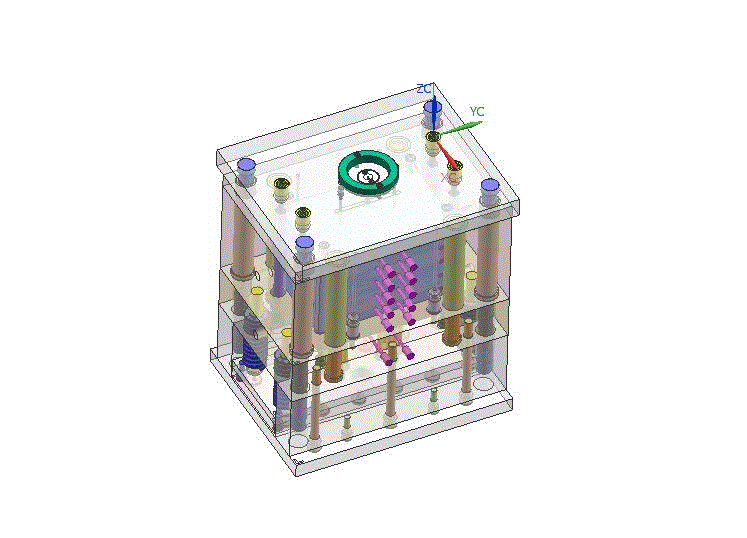 关键词:机械设计;一模两腔;点浇口;注射机;注塑模具