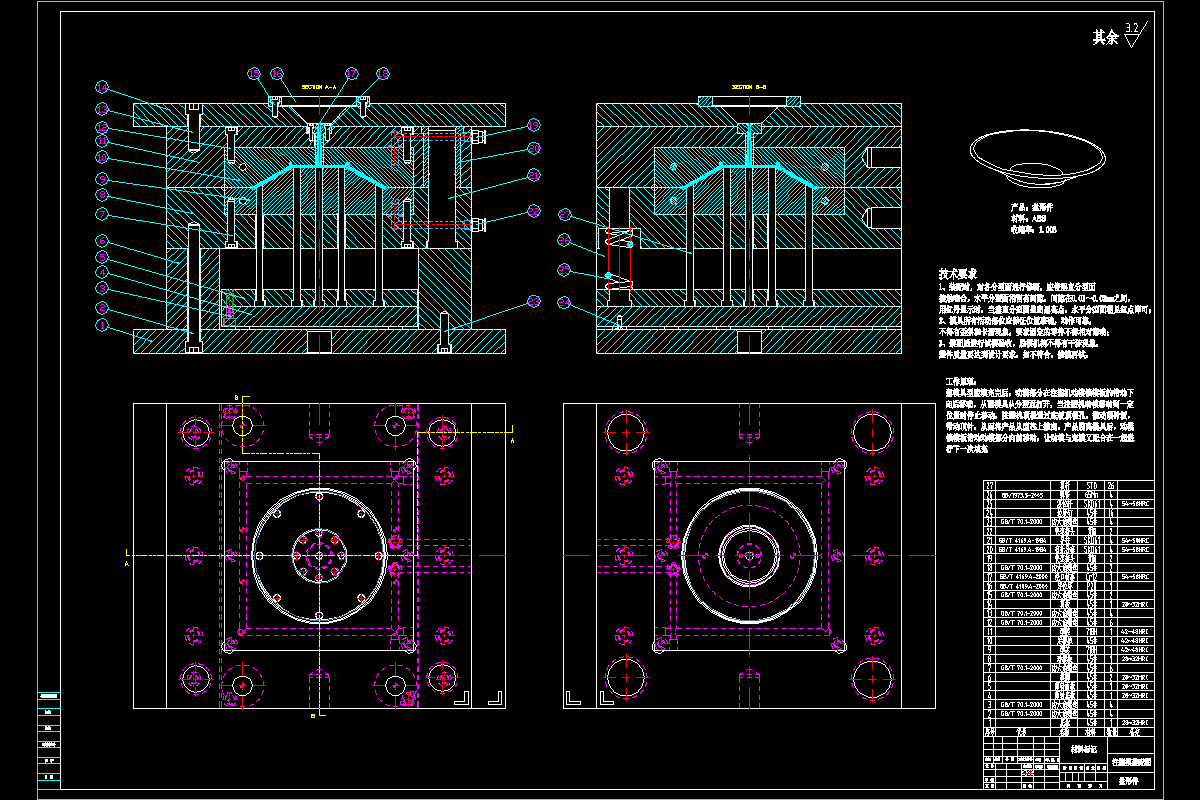 关键词:盘形件餐盆;注射模具;注塑机;模架;分型面;浇注系统