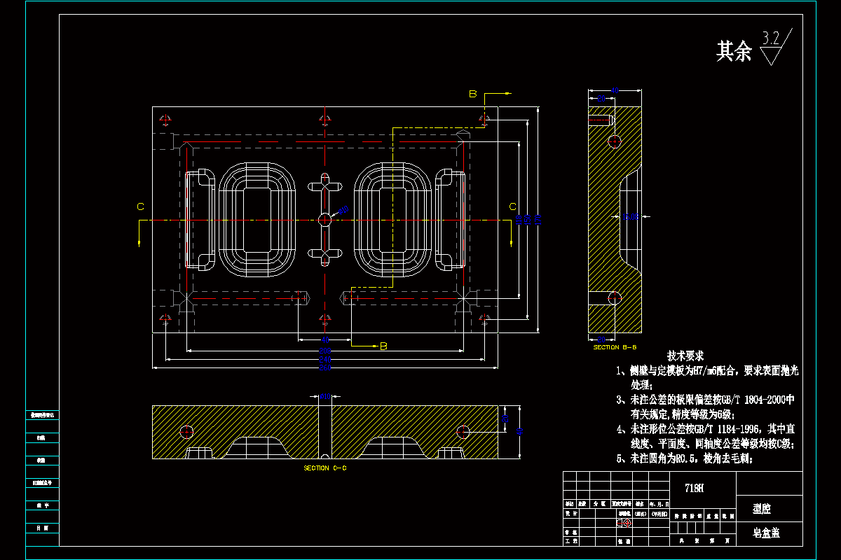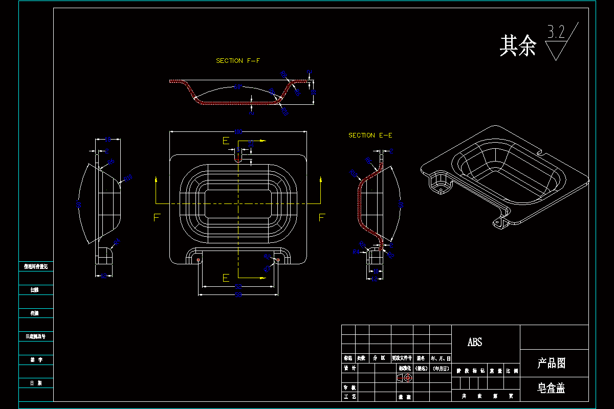 关键词:肥肥皂盒盖;注塑模具;一模两腔;侧浇口;注射机;模架;浇注系统