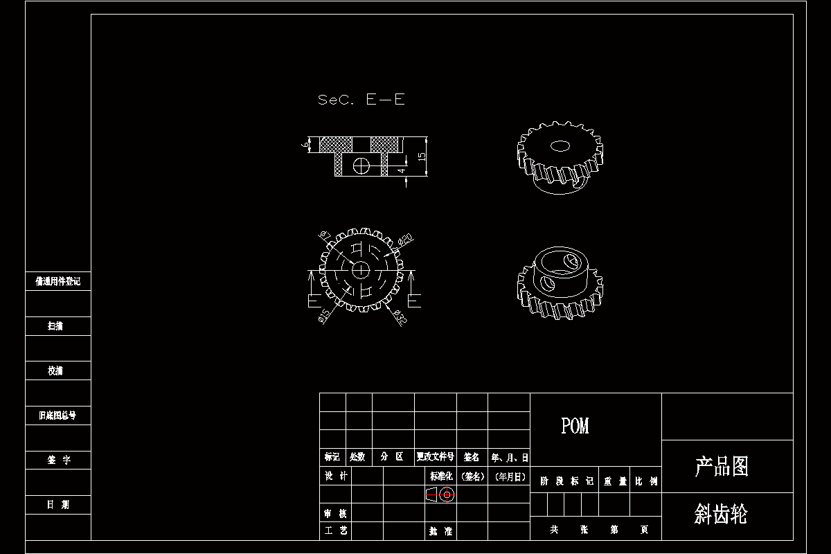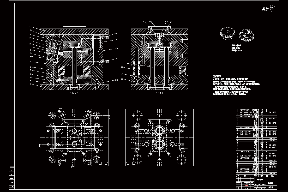 关键词:斜齿轮;一模两腔;侧浇口进料;注射机,冷却系统;注塑模具