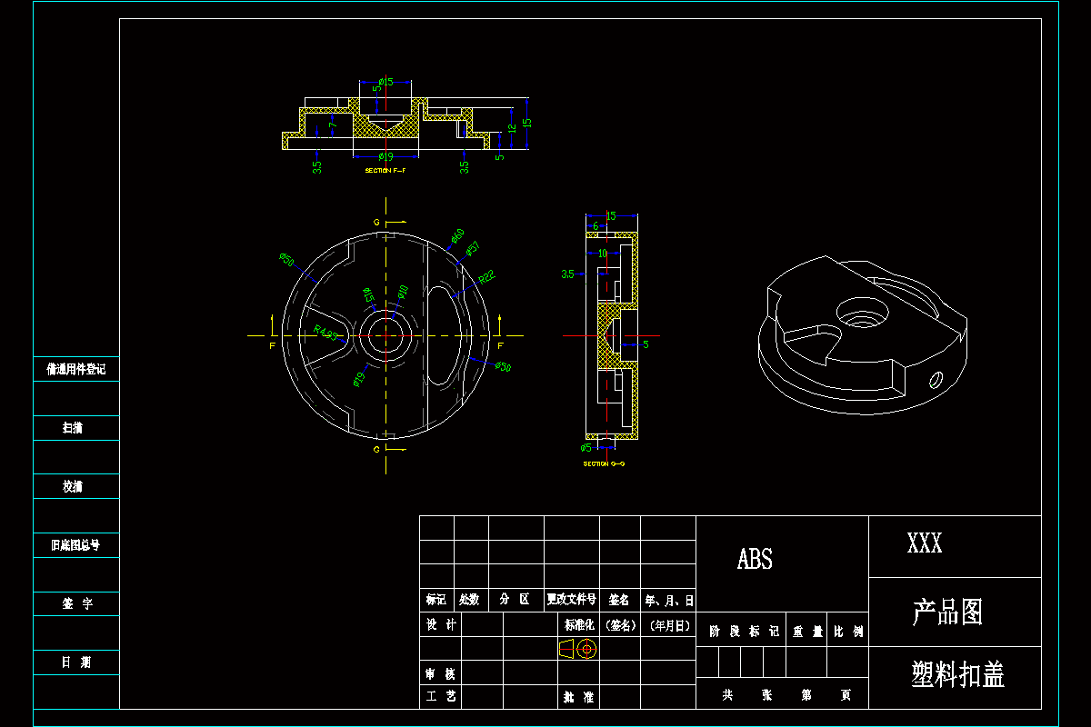 本设计的模具设计对象为塑料扣盖,塑料制品有很多种成型的方法,前期对于设计对象进行了相关的测量,数据的记录等;中期主要是使用UG三维设计软件根据前期测量的数据建立立体模型,并在塑件模型的基础上利用UG制造内的模具型腔模块对塑料扣盖作出相应的注塑模模具设计,包括有塑件元件、主分型面、浇口等,并且加入相应的模架、浇口、流道等;后期则是以之前作出的成果为基础使用CAD软件绘制出相应的二维图,也就是工程图,更加清晰的显示出塑件的结构以及模具的机构。本设计使用的是最常使用的注塑方式——注射成型,进行塑料扣盖注塑模模具设计。
