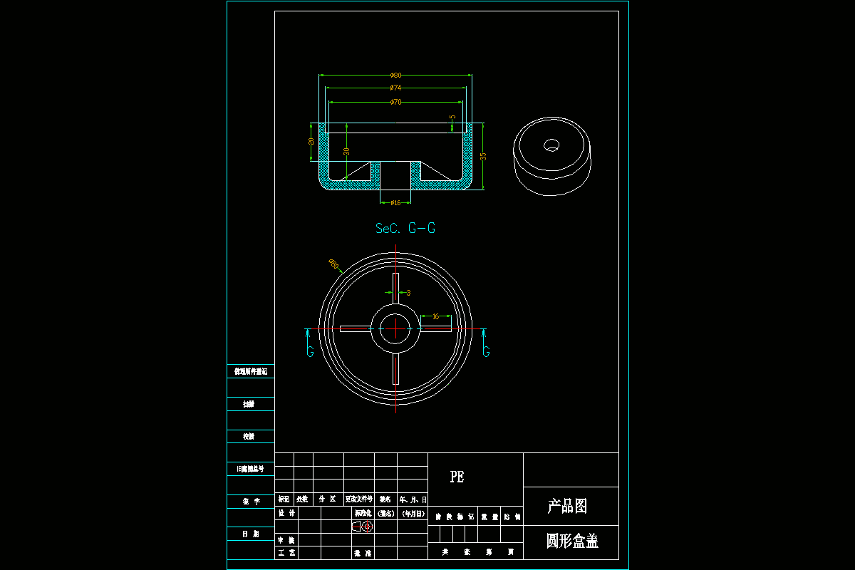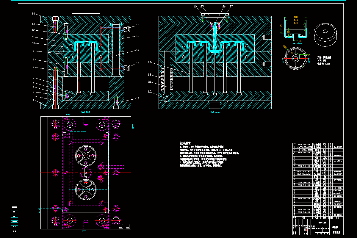 关键词:圆盒盖;一模两腔;侧浇口进料;注射机,冷却系统;注塑模具