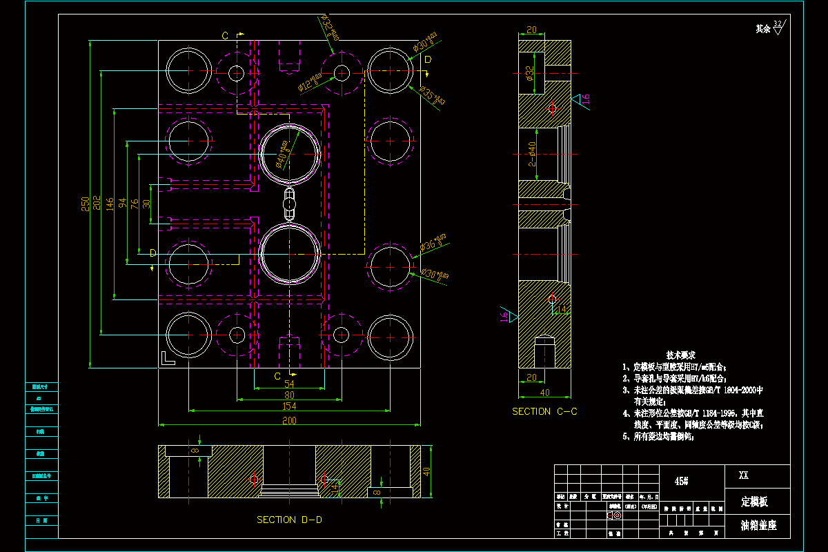 根据塑料油箱盖座制品的要求,了解塑件的用途,分析塑件的工艺性、尺寸精度等技术要求,考虑塑件制件尺寸。本模具采用一模两腔,侧浇口进料,注射机采用HTF 160X2B型号,设置冷却系统,CAD和三维软件绘制二维总装图和零件图,选择模具合理的加工方法。附上说明书,系统地运用简要的文字,简明的示意图和和计算等分析塑件,从而作出合理的注塑模具设计。