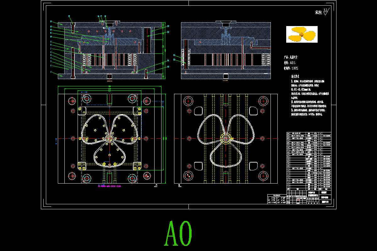 关键字:风扇叶片;注射机;冷却系统;注塑模具