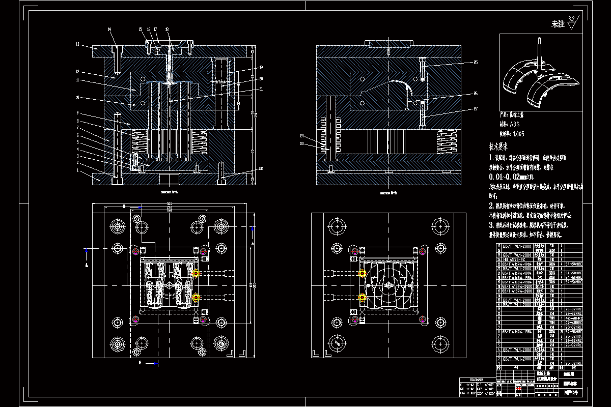 关键词:鼠标上盖;一模二腔;侧浇口;注射机;冷却系统;注塑模具