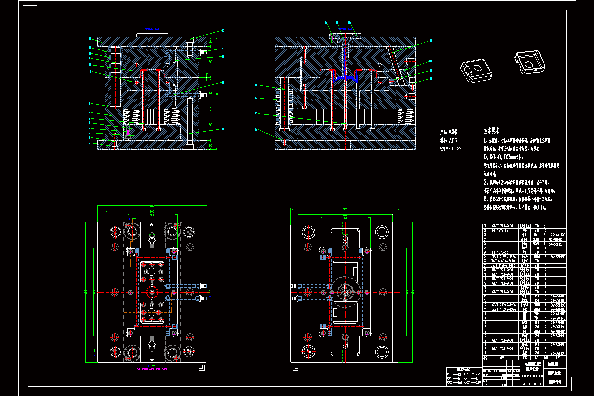 关键词:电器盖;一模两腔;侧浇口进料;注射机;冷却系统;注塑模具