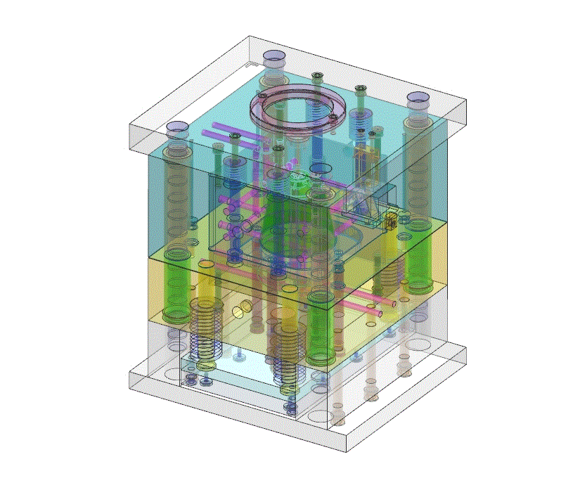 本次设计的是电风扇罩的注塑模具。所用材料是当前应用较为广泛的材料PP。在设计中,分析塑件的工艺性。模具结构可采用一模一腔,侧浇口进料,注射机采用HTF 80XA型号,并对其相关的数据进行校核。选用铲机、前模滑块抽芯机构。首先根据三维软件设计出分型面,进而设计出型腔、型芯,通过各种手册选择标准模架的绘制,并且进行浇注系统、脱模机构、冷却系统等模具重要结构的设计。最后对设计过程中的相关零部件进行了计算和校核,在无误的基础上进行了模具总装,并利用CAD软件绘制出总装及各主要零件的二维工程图,设计出一套塑料注塑模具