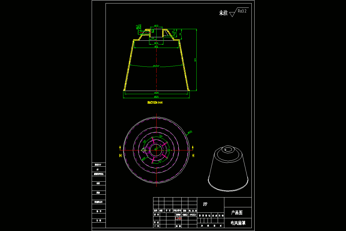 关键词:电风扇罩;一模一腔;侧浇口;前模滑块;冷却系统;注塑模具