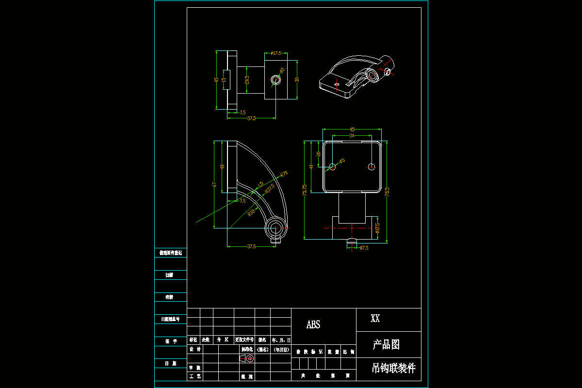关键词:吊钩联装件;工艺;注射成型;注塑模具