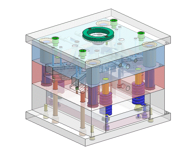 关键词:斜面弹簧接地端子;注塑模具;推出机构;流道;