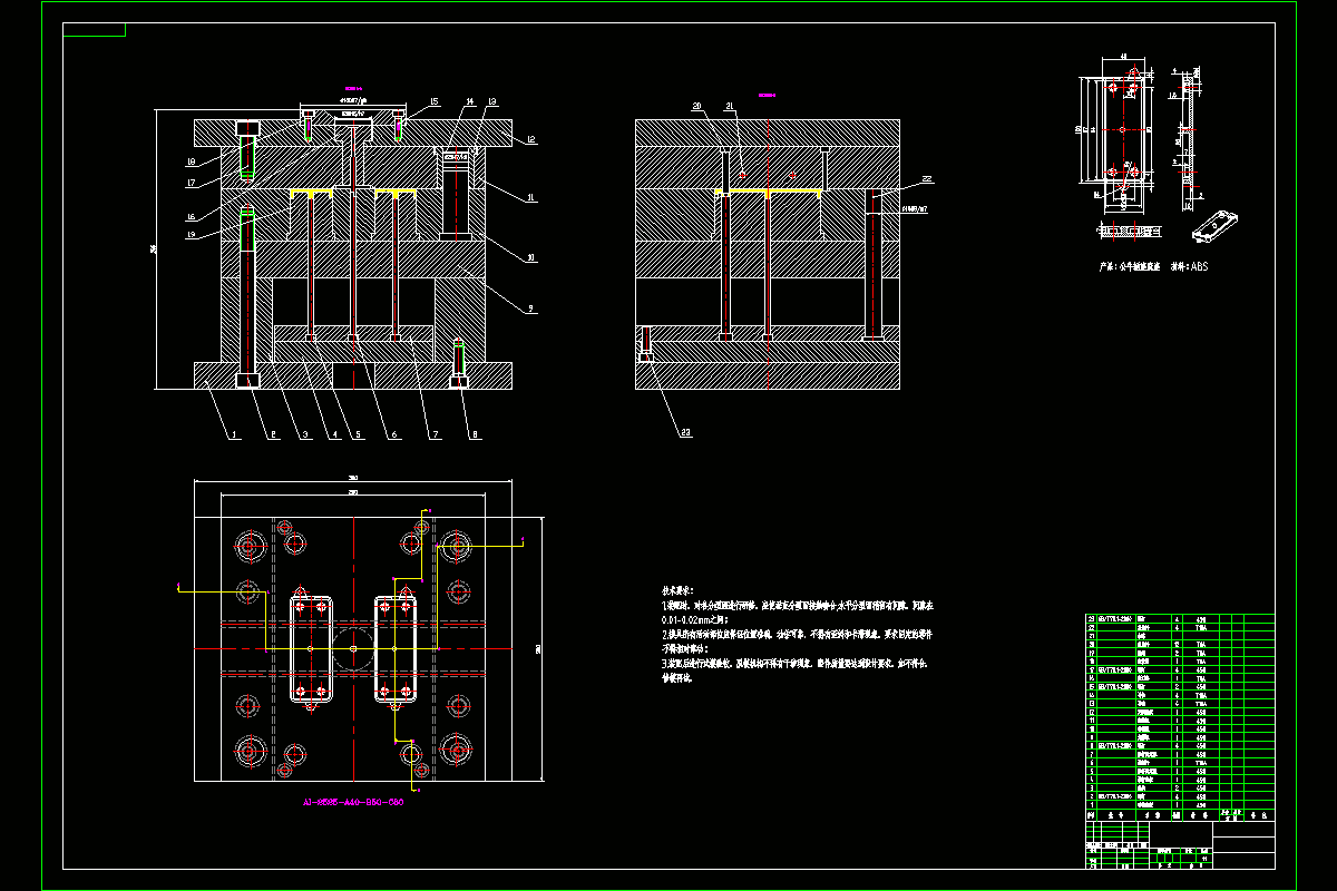 本次设计的题目是:公牛插座底盖注射模。本次设计主要是通过对塑件的形状、尺寸及其精度的要求来进行注射成型工艺的可行性分析。塑件的成型工艺性主要包括塑件的壁厚,斜度和圆角以及是否有抽芯机构。通过以上的分析来确定模具分型面、型腔数目、浇口形式、位置大小;其中最重要的是确定型芯和型腔的结构,例如是采用整体式还是镶拼式,以及它们的定位和固紧方式。此外还分析了模具受力,脱模机构的设计,合模导向机构的设计,冷却系统的设计等。最后绘制完整的模具装配总图和主要的模具零件图。