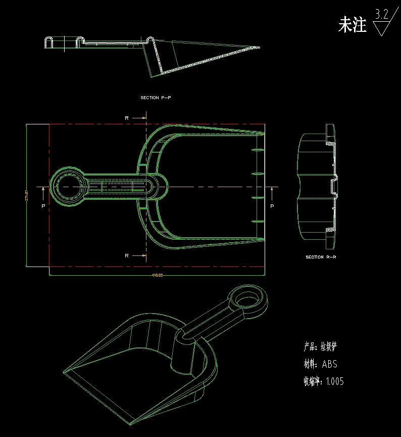 关键词:垃圾铲;大浇口;注射机;冷却系统;注塑模具