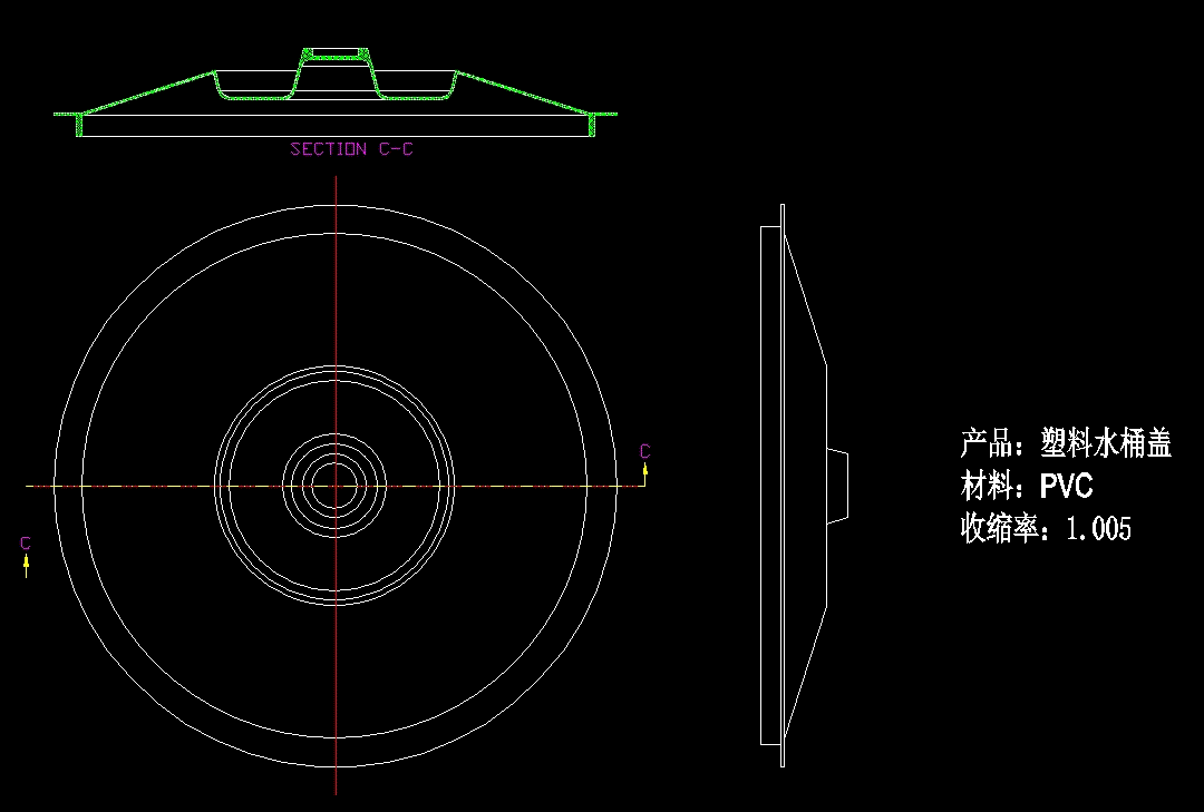 关键词:塑料水桶盖;一模一腔;注射机;冷却系统;注塑模具