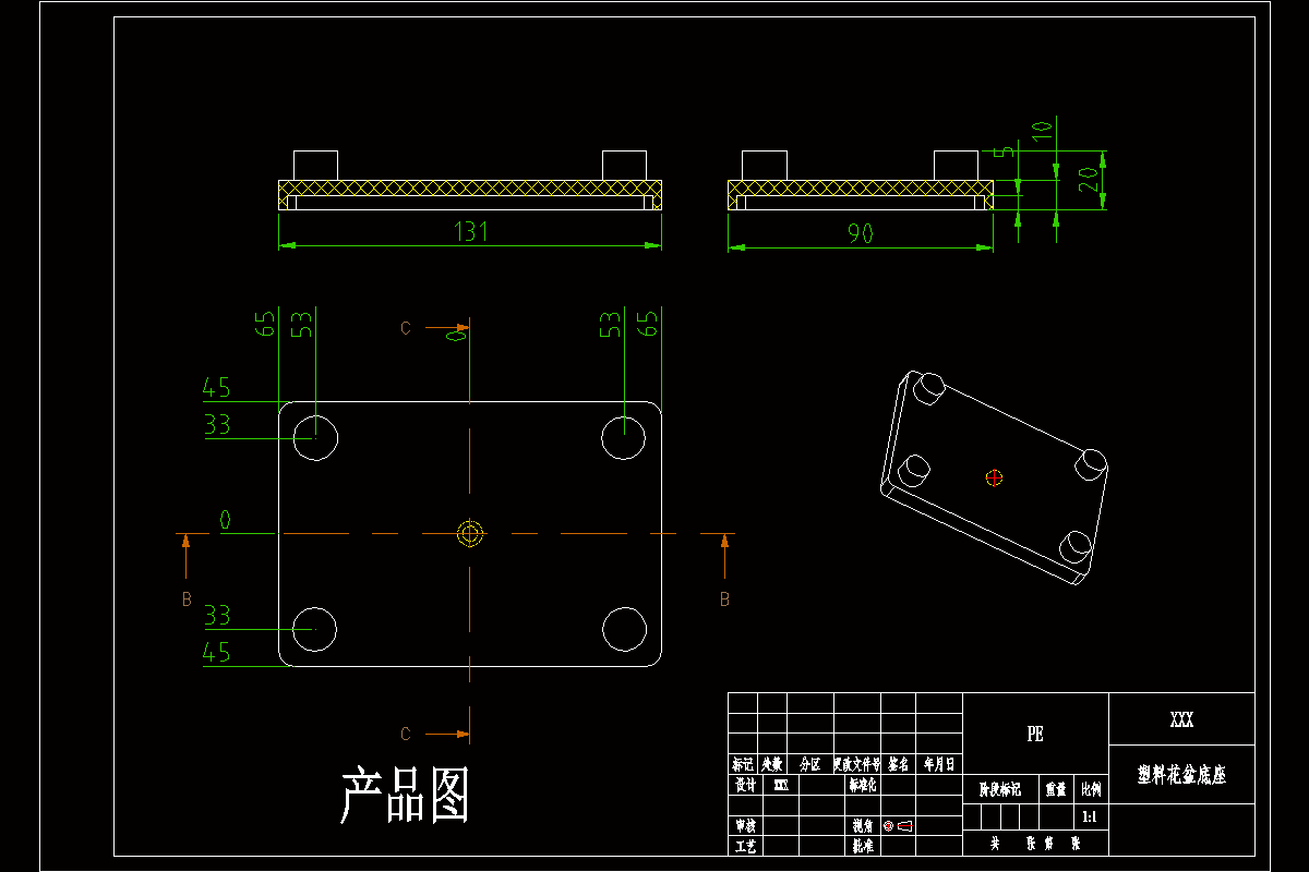设计的课题是塑料花盆底座,介绍了注塑模的成型过程和模具的构造及工作的原理。通过对模具的结构和工艺性分析,确定了模具的分型面、浇口形状、流道结构、顶出机构以及所选用的注射机的型号。材料选用流动性好,在日用品方面应用比较多的PE(聚乙烯)。通过一系列的工艺分析、选材及模具设计,最终制定了一个完整的塑料花盆底座生产流程。利用UG NX7.5绘制3D模型以及AutoCAD绘制2D工程图,最后经过一系列设计,生成总工程图。
