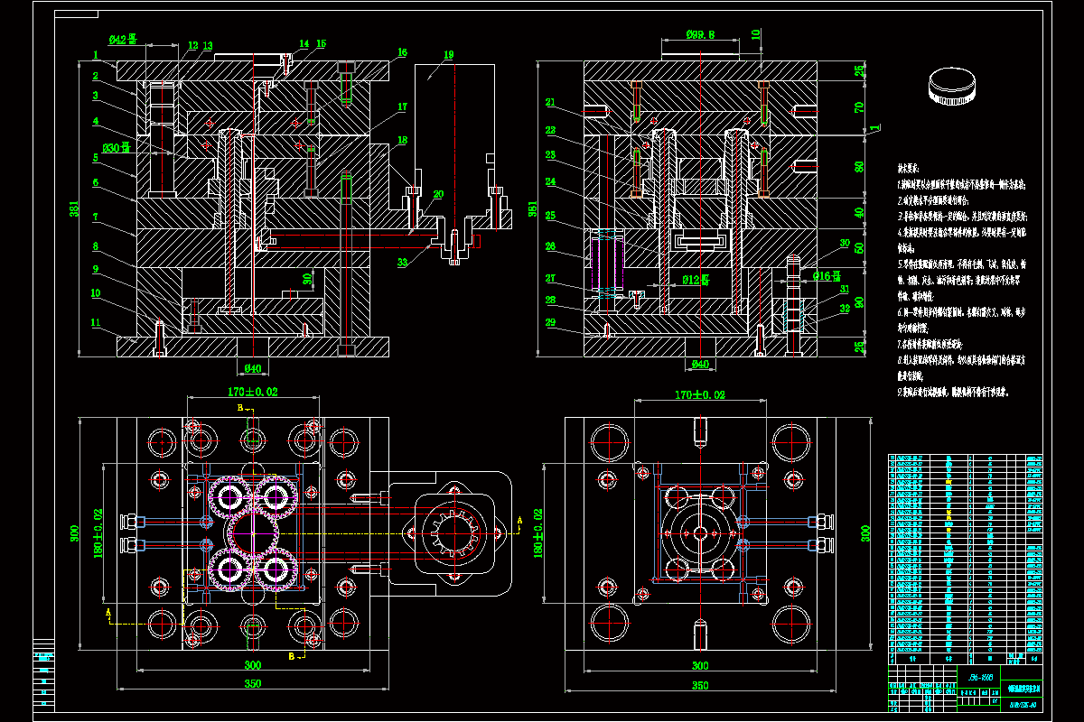 正文重要概述完成冰露矿泉水瓶盖塑料模具的目标。设计中查阅相关资料,根据我国最新工程(模具)标准以及欧美国家设计标准进行模架的选择和设计。依据塑件的构造达到制作有关板的结构及增设有关零件。设计完后,利用UG去做三维模具的装配。选用XS-ZY-60注塑机并校核相关设计数据。使用AUTOCAD软件绘制模具二维总装图,绘制多个零件图。又因为此螺纹在塑件里面,因此我们要选择好塑件脱模方式,设计脱模机构的型腔,确定模腔数目的和其他问题。