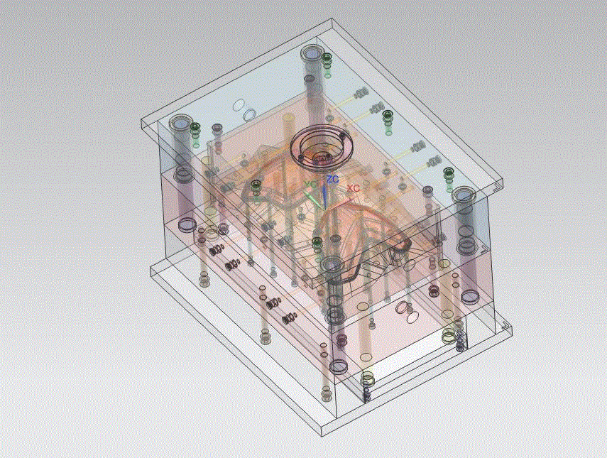 我的课题是做摩托车车尾灯罩的,像灯罩,车轮子,车门这些东西,他们都是一对一对出现的,这时候我就想为了方便能不能花一次功夫就做好两件产品——一模两腔结构,通过互联网和书籍的力量,我获得了一些相关的知识,它引导了我这一设计的实现方法。