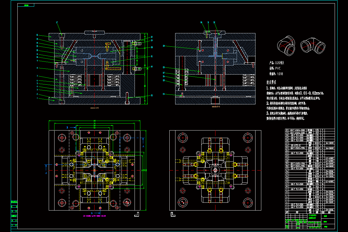 关键词:机械设计;模具设计;CAD绘制二维图;PROE绘制3D图。