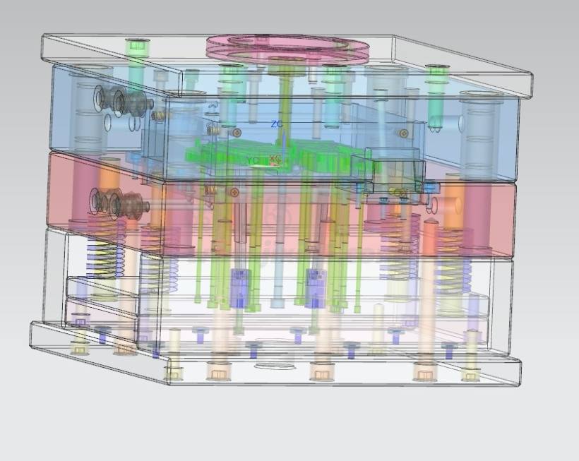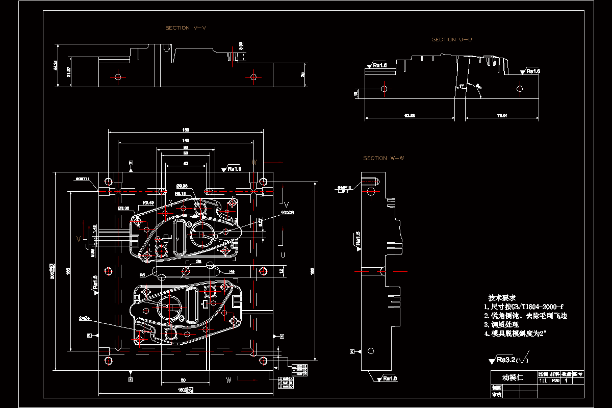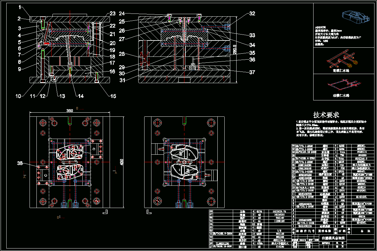 本次设计是为了让我们能够综合运用在学校学习到的基本理论,并结合生产实习中学到的实践知识,独立的分析和解决工艺问题,具备设计一个中等复杂程度零件的工艺规程的能力和注塑模具设计的基本原理和方法,拟定模具设计方案,完成模具结构设计的能力,也能熟悉和运用有关手册、图表等技术资料及编写技术文件等基本技能的一次实践。该课题从产品结构工艺性,具体从模具结构出发,对模具的浇注系统、模具成型部分的结构、顶出系统、冷却系统、注射机的选择及有关参数的校核,都有详细的设计。通过整个设计过程表明该模具能够达到该塑件所要求的加工工艺,也就是设计一副注塑模具来生产遥控器壳体塑件产品,以实现自动化提高产量。针对遥控器壳体具体结构,该模具是侧浇口的单分型面注射模具。通过模具设计表明该模具能达到遥控器壳体的质量和加工工艺要求。