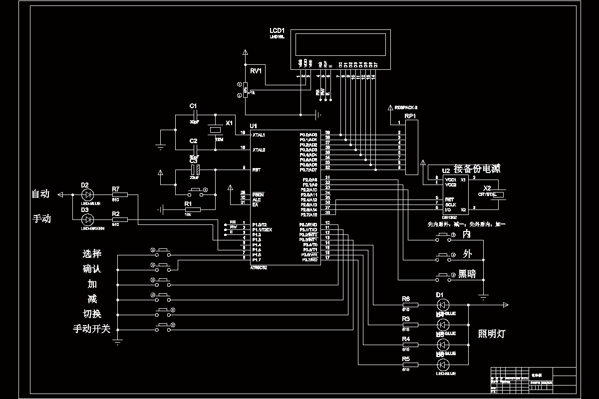 关键词:教室灯光控制;热释红外传感器;光敏电阻;单片机