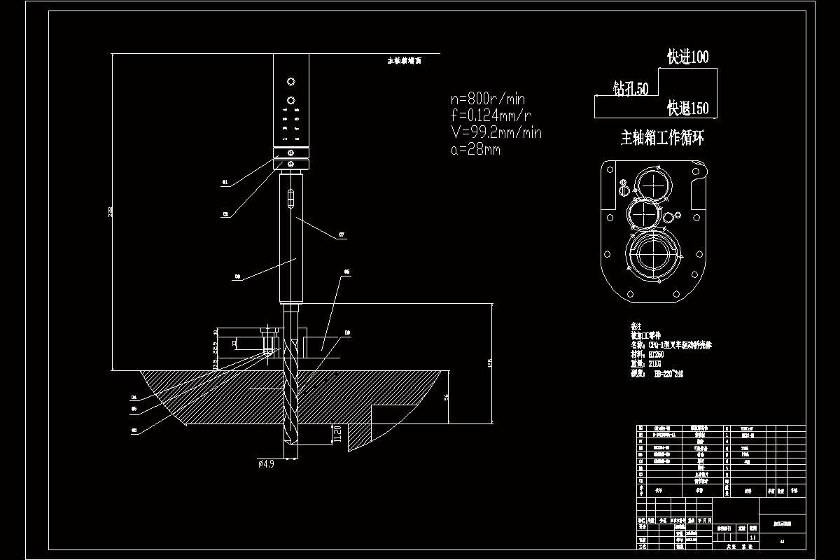 该组合钻床中的多轴箱的主轴的选择和系统传动图。本文对主轴箱部分的设计进行了详细的计算和论证