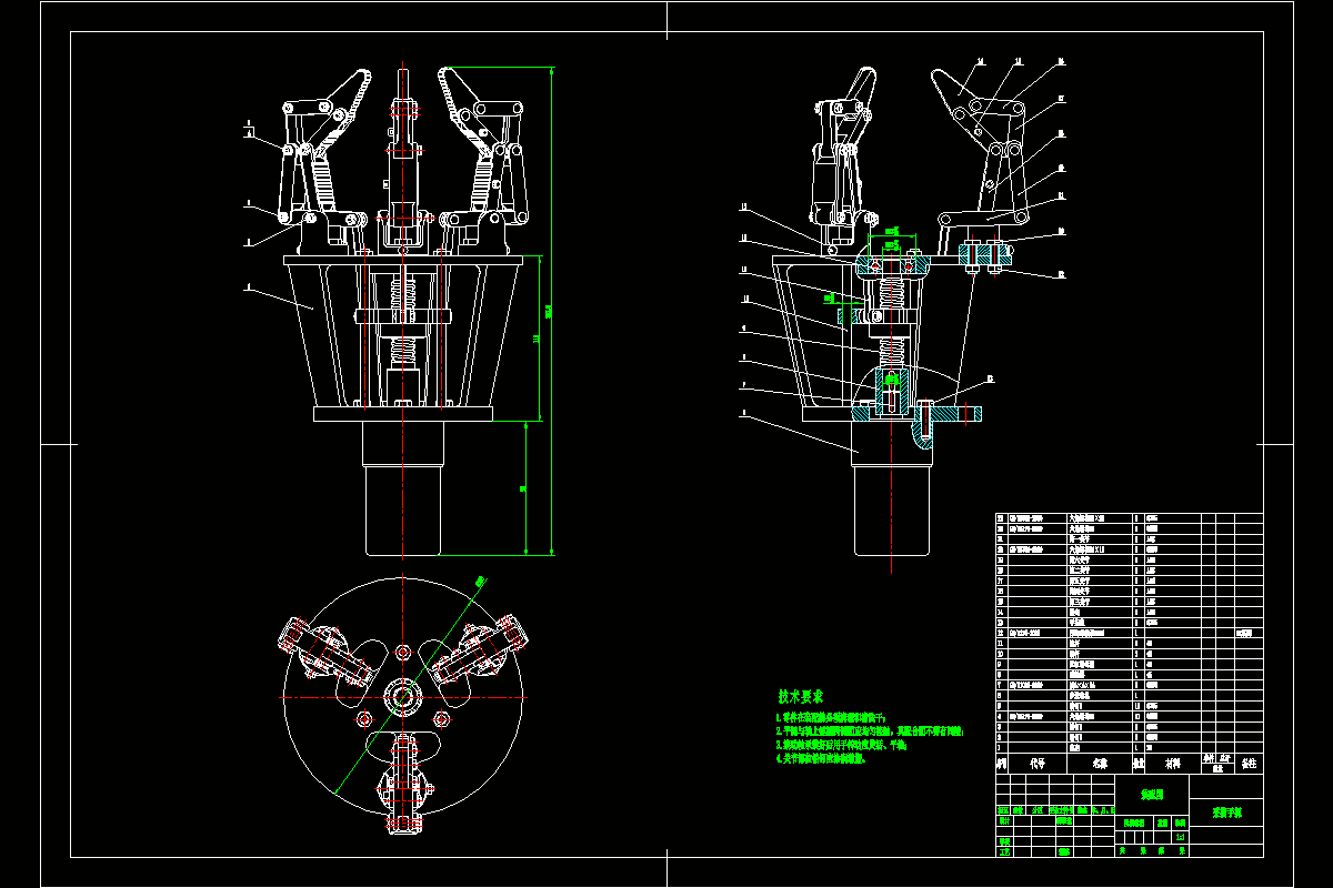 手推车载式苹果采摘机设计含proe三维及11张CAD图带设计计算说明。在国内,苹果采摘由人工来完成,采摘效率低、采摘人员劳动强度大、工作环境差。苹果种植业的发展提高了苹果机械市场的需求,为了节约人力物力,提高果农的经济效益,开展采摘器械的研究有重要的意义。苹果采摘机是一种极具研究价值和应用前景的农用地面移动机器人,本论文对具有移动功能的采摘机进行了总体技术的研究,并主要对其车体结构部分、手臂部分、手抓部分进行了详细的设计。 通过功能和设计任务的分析,确立了苹果采摘机总体功能构架;接着,对本采摘机车体结构部分、手臂部分、手抓部分进行了详细设计与校核;然后,对其气动及电气控制系统进行设计;最后采用AtuoCAD软件绘制了苹果采摘机的装配图、主要零件图及电气控制系统图