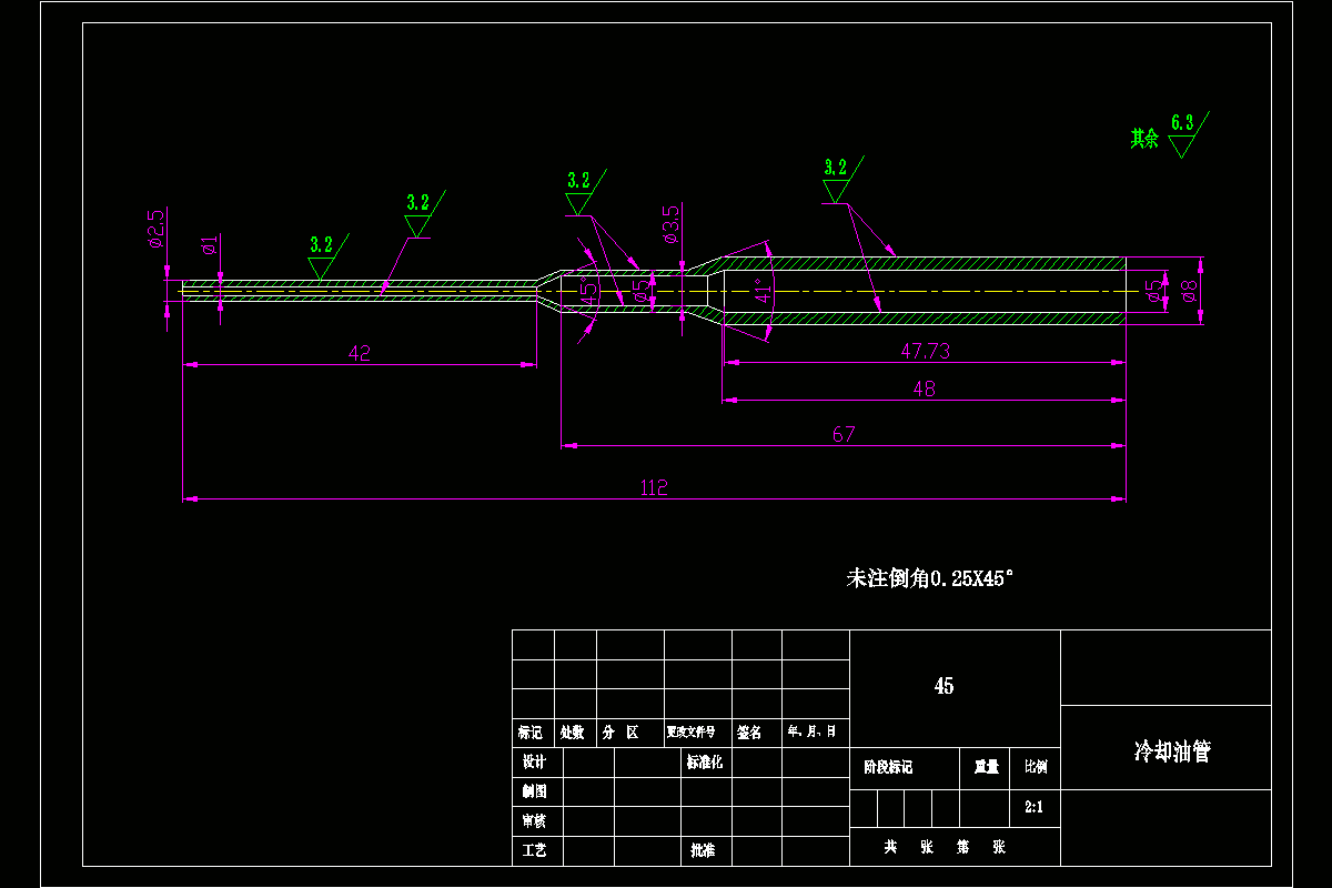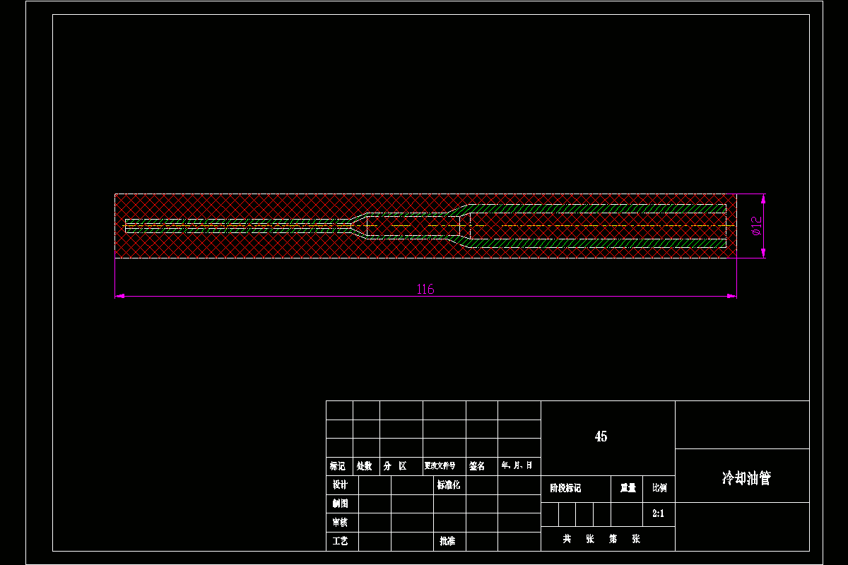 本文给出的零件是冷却油管,冷却油管是液压传动系统中典型的零件之一。为冷却液压系统回路,提供重要的通路。通过对零件图纸的分析,培养自己树立正确的对产品的加工能力,完成加工及组装工艺。也可使自己进一步加深对所学理论的认识,学会运用所学知识去分析和解决一些实际问题。