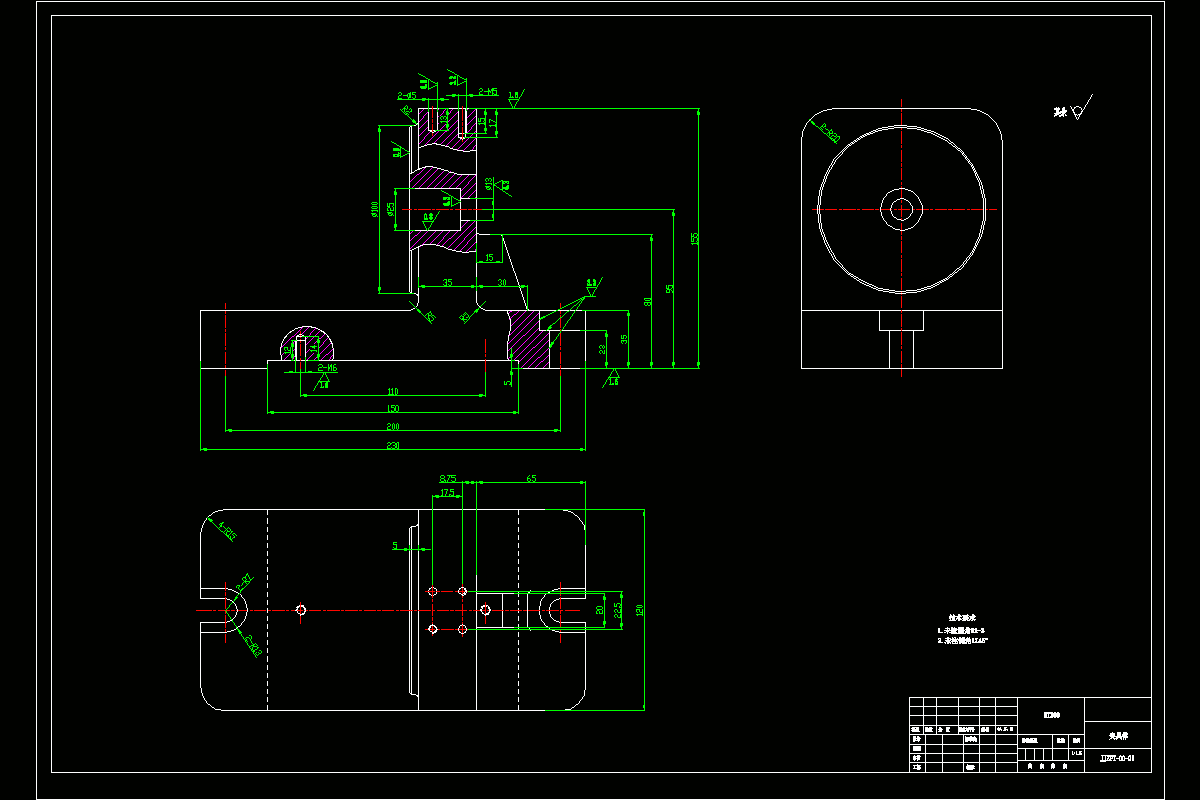 专用夹具设计钻Φ6孔钻床专用夹具。对夹具进行设计的时候,要知道怎么样对产品进行装夹,如何进行定位,如何进行夹紧。定位是有了哪些零部件,夹紧使用了哪些零部件,对产品进行定位必然会有误差出现,对它进行分析。利用Proe三维建模软件完成夹具三维实体建模,利用CAD绘图零件完成夹具的装配图,非标零件图,将的详细内容写出来。