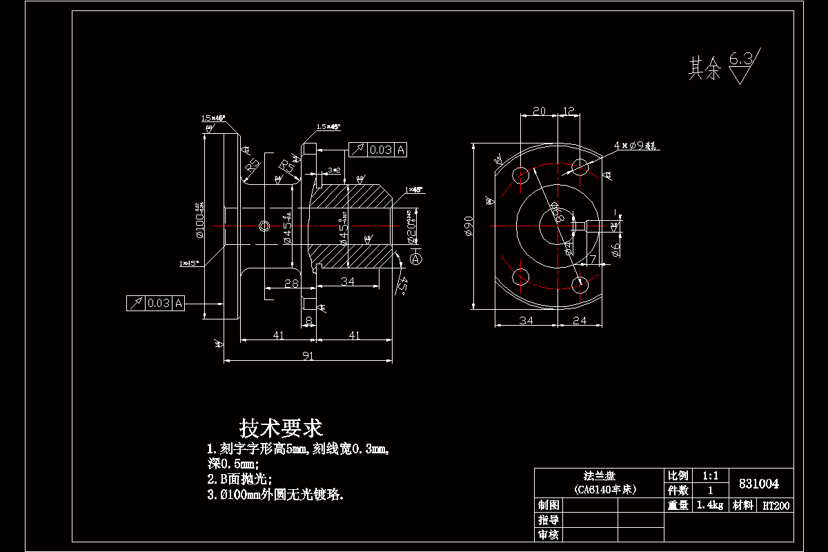 关键词:CA6140车床;法兰盘;加工工艺;钻Φ6孔;夹具