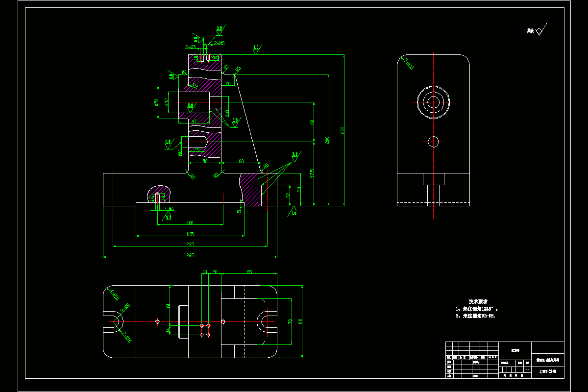 专用夹具设计有铣6X9.5槽。对夹具进行设计的时候,要知道怎么样对产品进行装夹,如何进行定位,如何进行夹紧。定位是有了哪些零部件,夹紧使用了哪些零部件,对产品进行定位必然会有误差出现,对它进行分析,需要画的图纸有夹具的装配图,非标零件图,将的详细内容写出来。