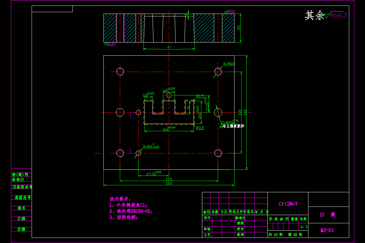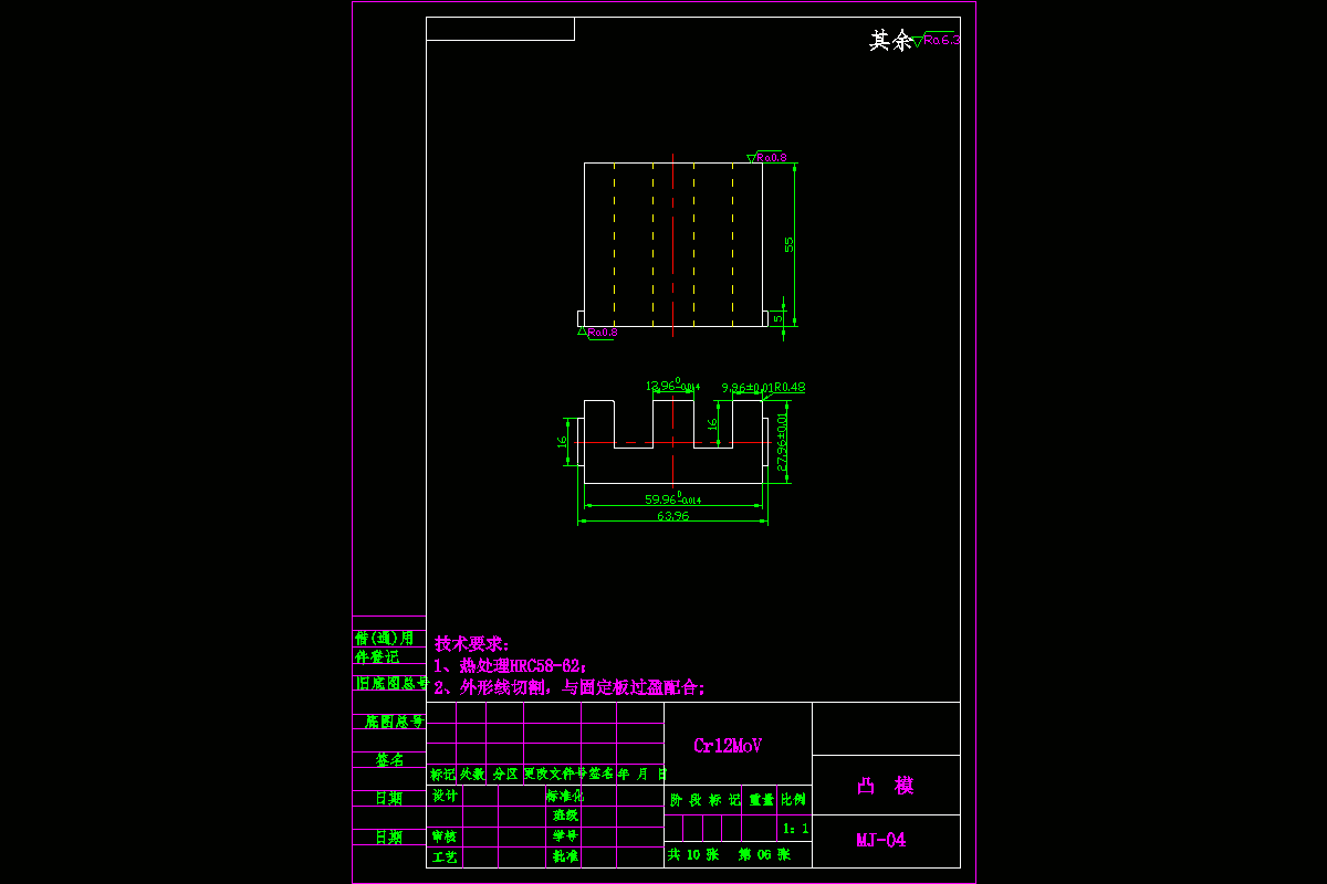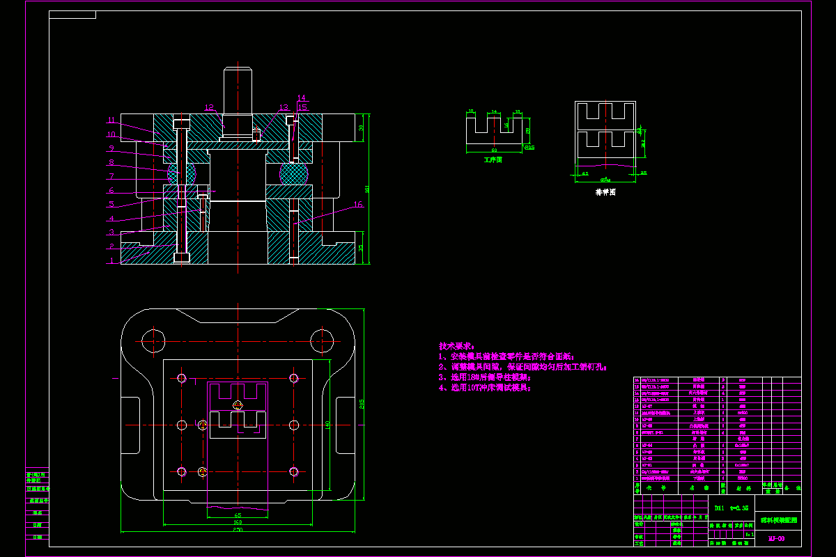 本应用本专业所学课程的理论和生产实际知识进行一次冷冲压模具设计工作的实际训练从而培养和提高了我的独立工作能力。本设计通过对变压器硅钢片的冲压工艺与模具设计的工艺性分析,确定了正确的工艺方案。从而对模具设计方案,以及冲压设备作出了分析与选择。通过分析决定采用复合模形式,然后参考其他模具结构以及查手册和计算设计。当所有的参数计算完后,对模具的装配方案,对主要零件的设计和装配要求技术要求都进行了分析。在设计过程中除了设计说明书外,还包括模具的装配图,非标准零件的零件图等。