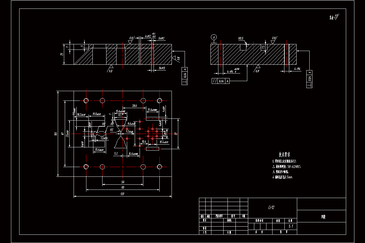 关键词:左右对称;公差IT14;粗糙度Ra6.3