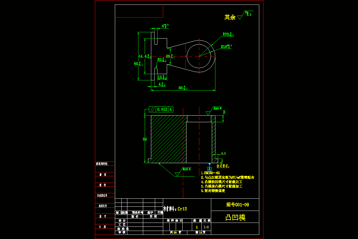 本次一共设计了两副模具,第一副为落料冲孔复合模,采用的是凸凹模和卸料板在下的倒装结构,凸模,凹模在上,冲孔产生的废料直接从凸凹模漏料孔掉下,制件卡在凹模中,由顶件器将产品从凹模中顶出,采用挡料销挡料,导料钉导料,卸料的方式采用弹性卸料,弹性元件为橡胶。