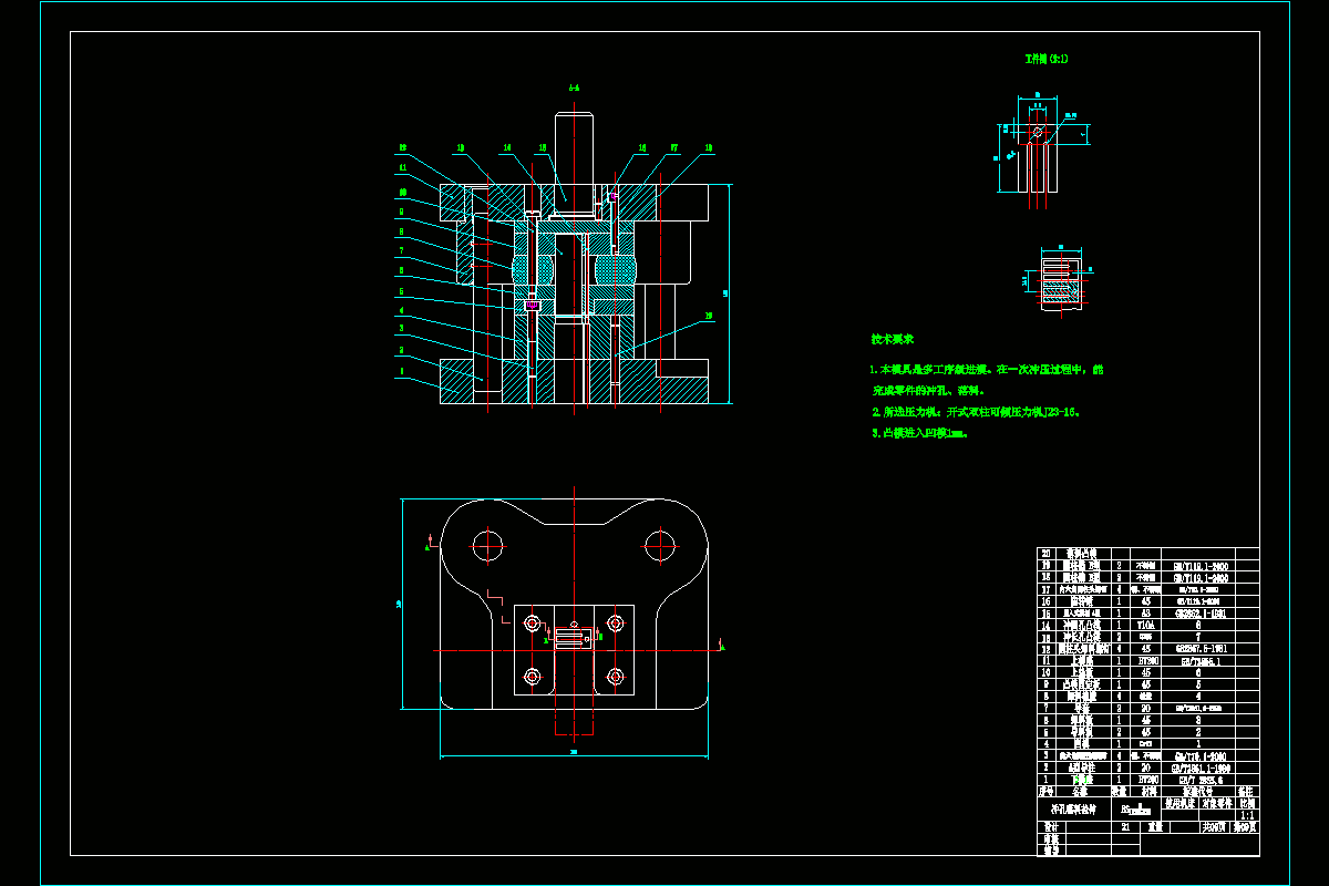 通过对课题的冲压工艺的分析及模具零件的计算后,首先对主要的工作零件以及非标零件进行二维图的绘制,并且绘制本套模具的装配图;其次对主要工作零件的加工进行工艺卡片的编制。