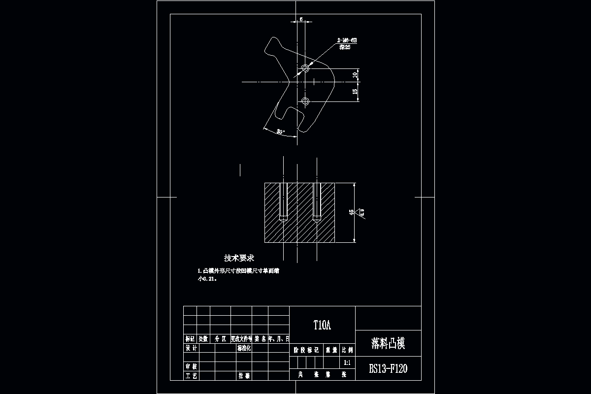 摘要:通过对拔头钣金工艺性的正确分析,设计了一副落料单工序模。说明书详细的叙述了该模具的整个设计过程,包括:零件工艺性分析,钣金成形工艺方案的确定,模具结构形式的确定,模具总体结构的设计,主要参数设计计算,以及钣金成形工艺规程等,并绘制出模具装配图和非标准件零件图。最后注意模具的使用和维护。