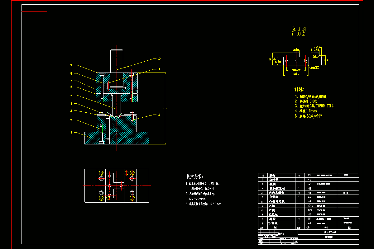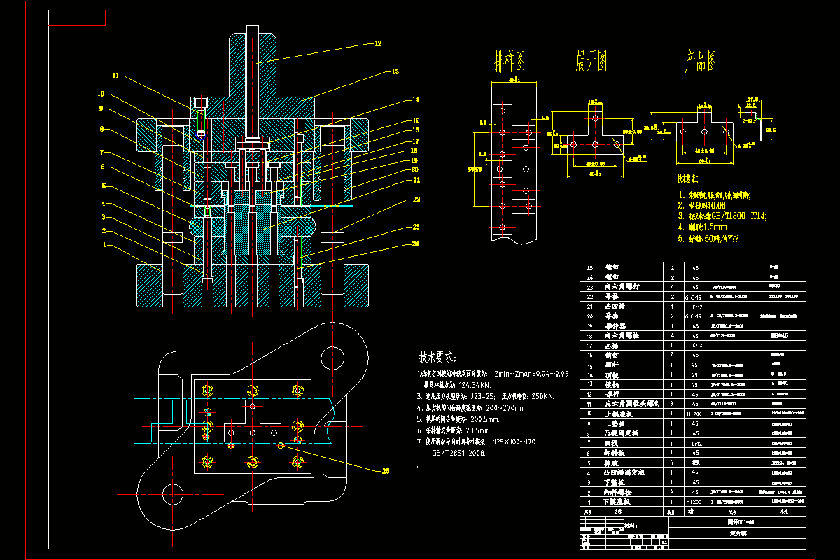 由于冲压件的弯曲件的结构处于一般,对称和对精密度的要求的一般,在设计的过程中充分的考虑到定位板的中心轴孔的对称度的要求,另外材料的平整度和模具的工作的强度。为了提高模具生产的效率和保证零件的尺寸精度,则决定采用复合模的生产形式。根据冲压件的结构,决定采用的倒装式结构,弹性卸料,导料销导料和挡料销挡料。之后,在进行零件的弯曲。因为本零件的结构的一般,弯曲工艺的不难,可一次进行成型。